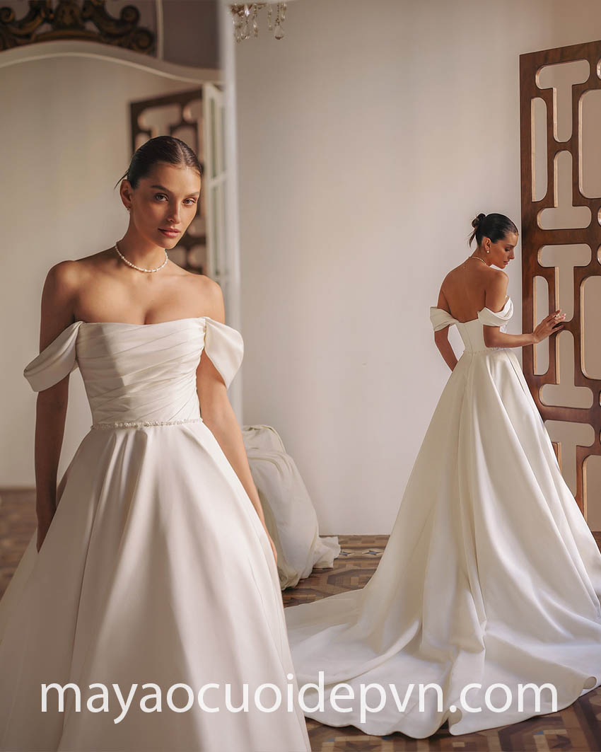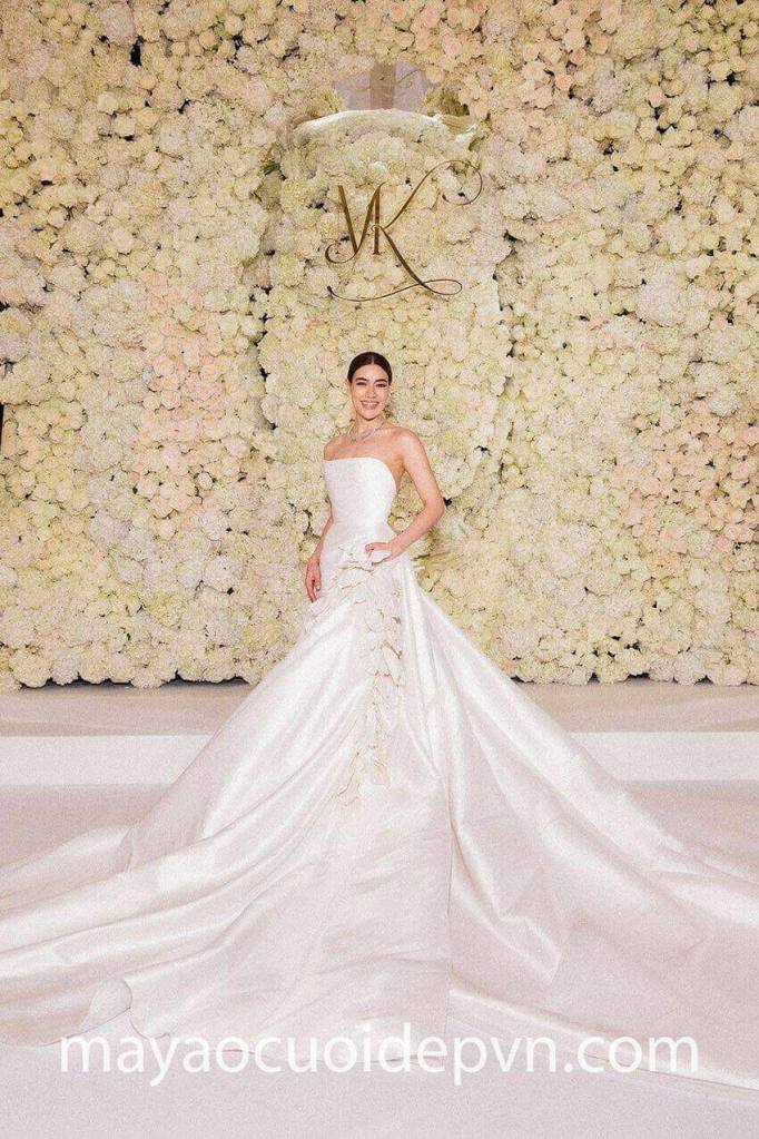 - Váy cưới đuôi dài phong cách dương đại – Sự tinh tế trong từng đường nét, nhẹ nhàng nhưng đầy cuốn hút.
