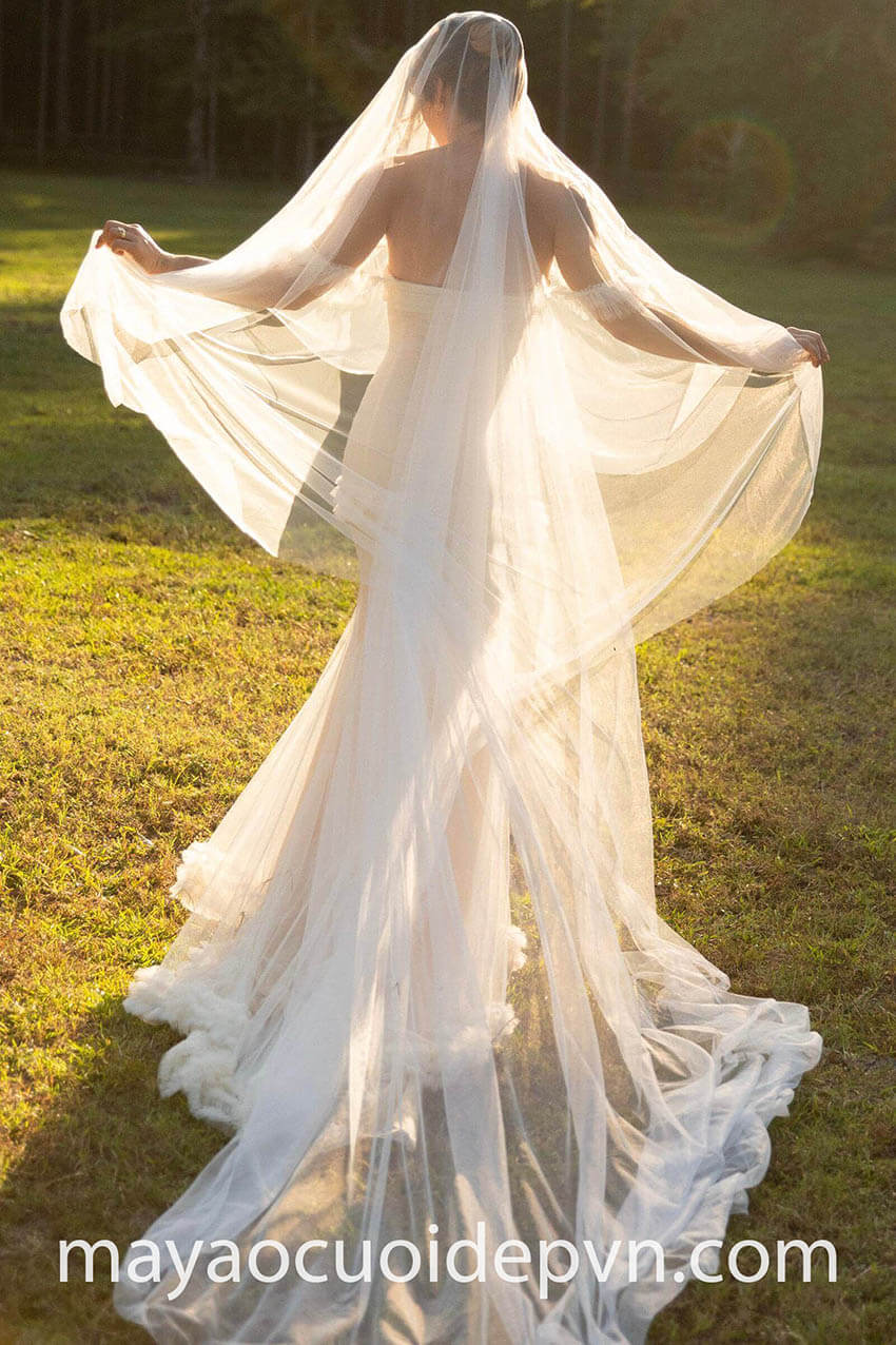 Hãy tưởng tượng mình bước đi trên con đường hạnh phúc, đuôi váy dài lướt nhẹ phía sau, tỏa sáng rực rỡ như một giấc mơ cổ tích có thực. Một chiếc váy cưới đuôi dài thiết kế riêng không chỉ mang đến vẻ đẹp lộng lẫy, mà còn tạo nên dấu ấn khó phai trong lòng mọi quan khách.