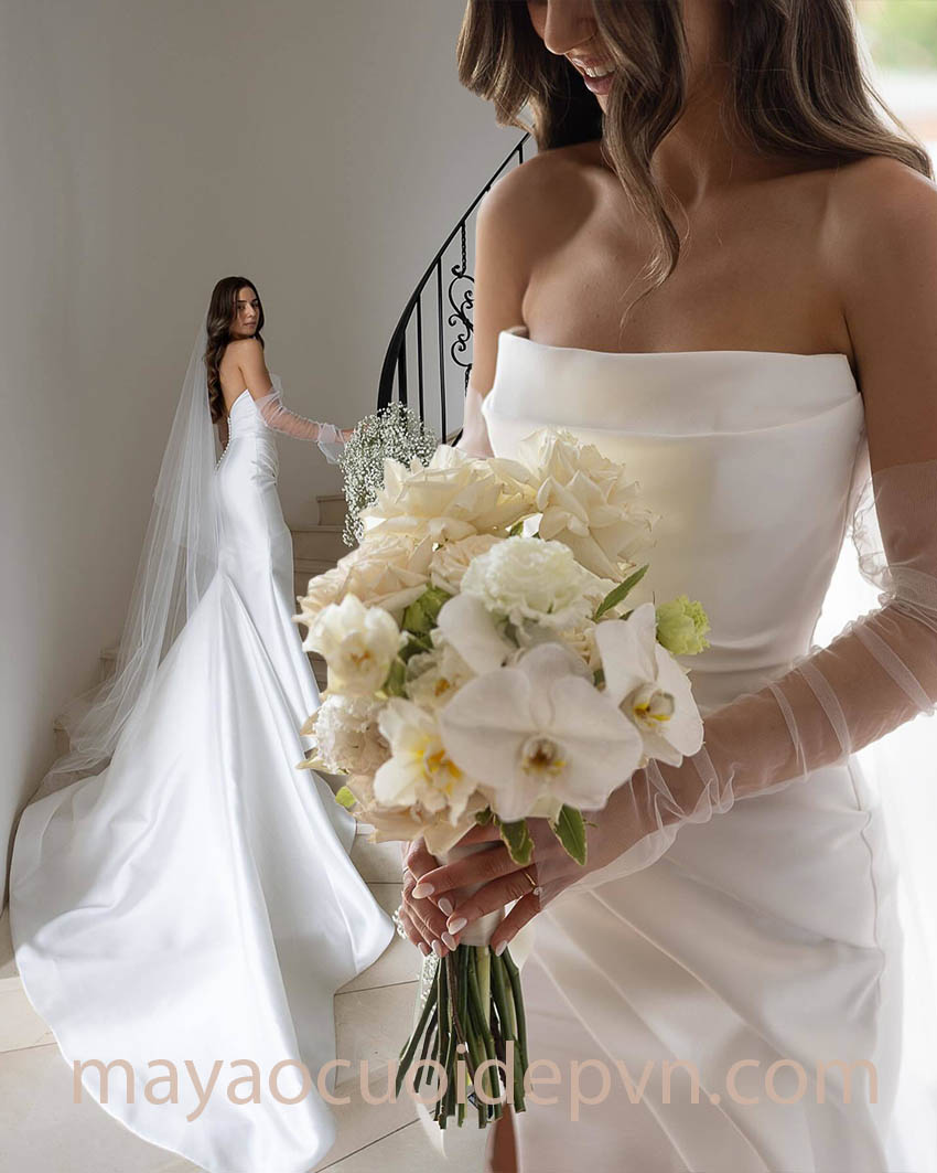 VÁY CƯỚI ĐUÔI DÀI ĐƠN GIẢN VÀ THANH LỊCH