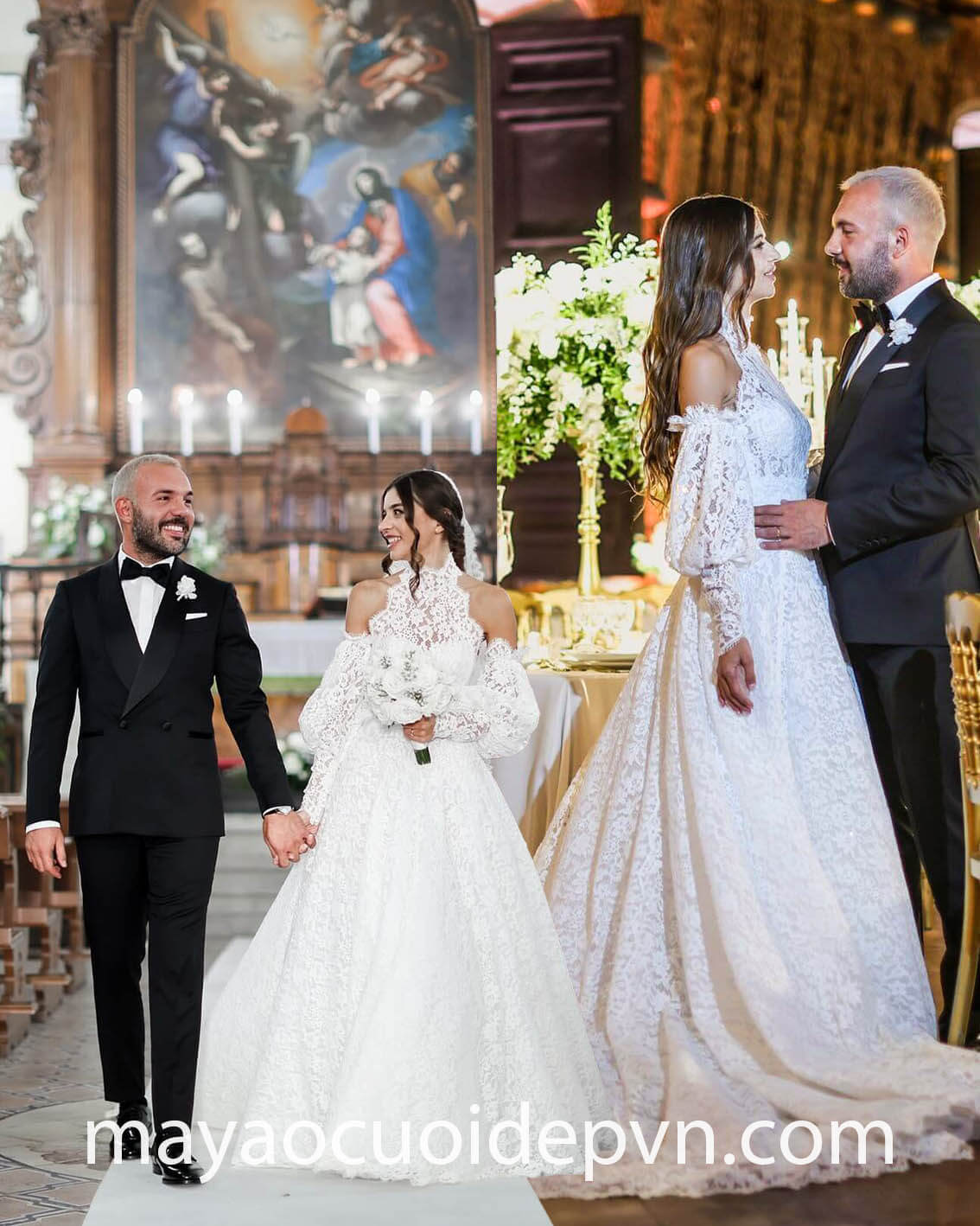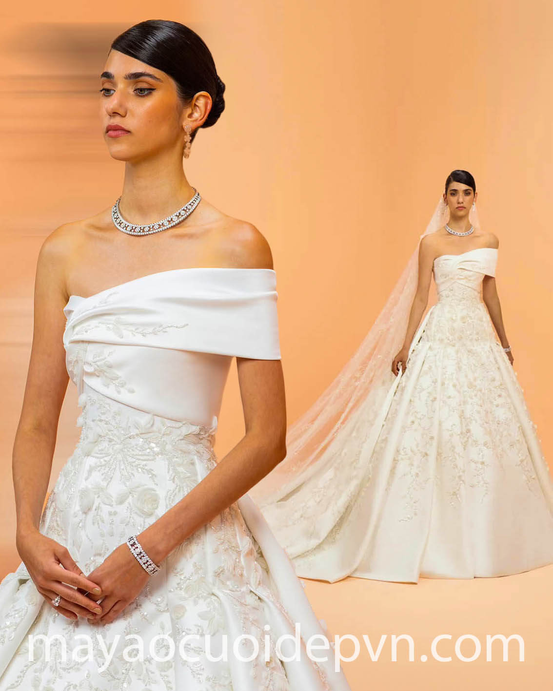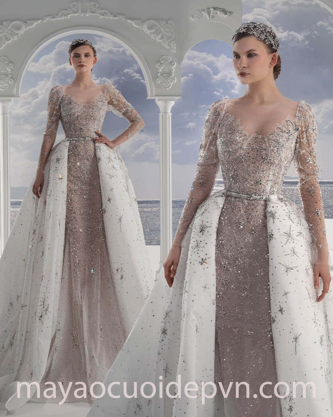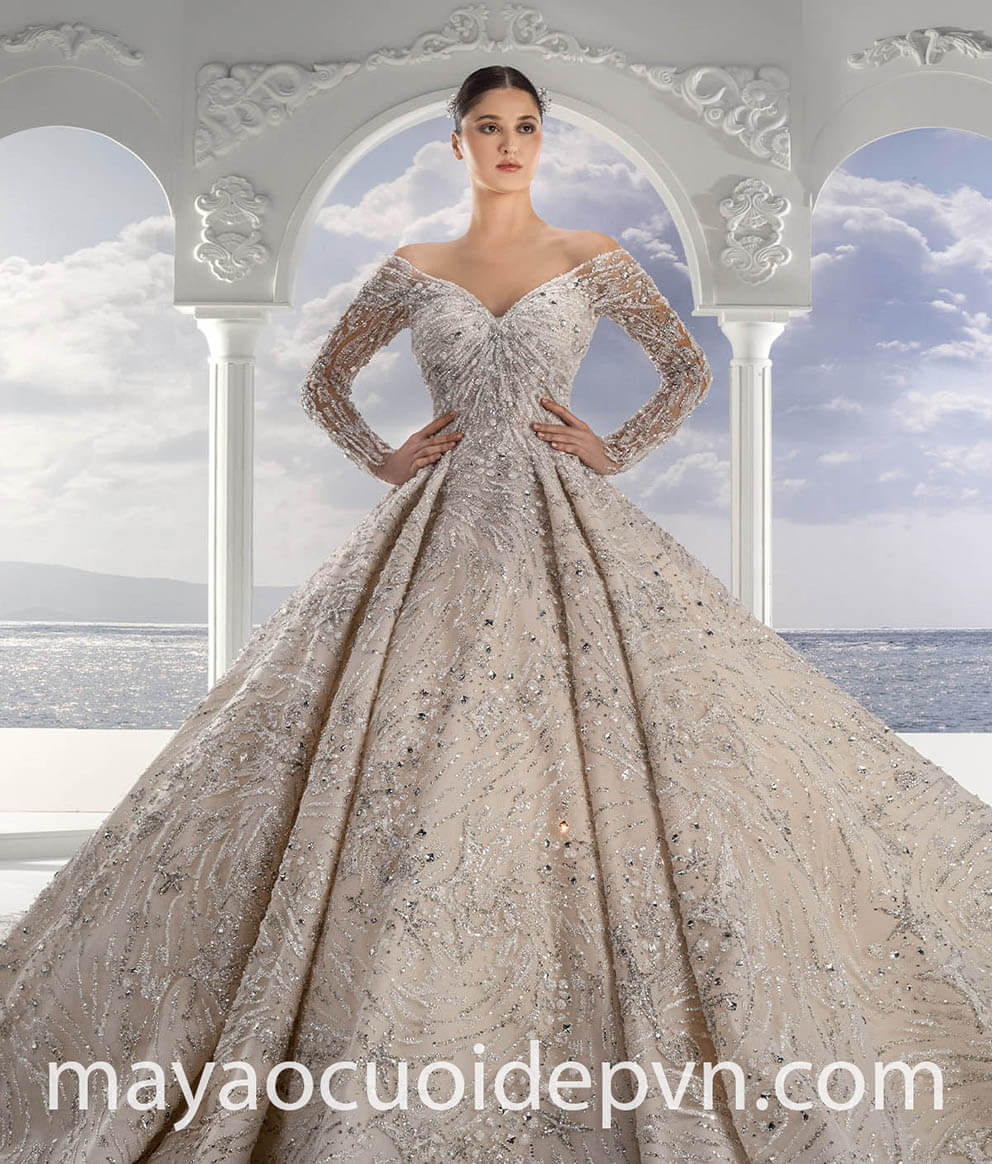 Mùa đông là dịp lý tưởng để bạn thử những mẫu áo cưới tay kiểu ấn tượng. Từ tay áo phồng, tay áo bishop đến những kiểu tay áo lệch vai, tay áo oversize sẽ làm cho bộ váy của bạn trở nên ấn tượng và đầy lôi cuốn. Còn nếu bạn yêu thích sự hiện đại, những chiếc tay áo ôm sát dún phồng trên vai với họa tiết ren hay pha lê tinh xảo sẽ mang đến một vẻ ngoài thanh lịch và sang trọng.