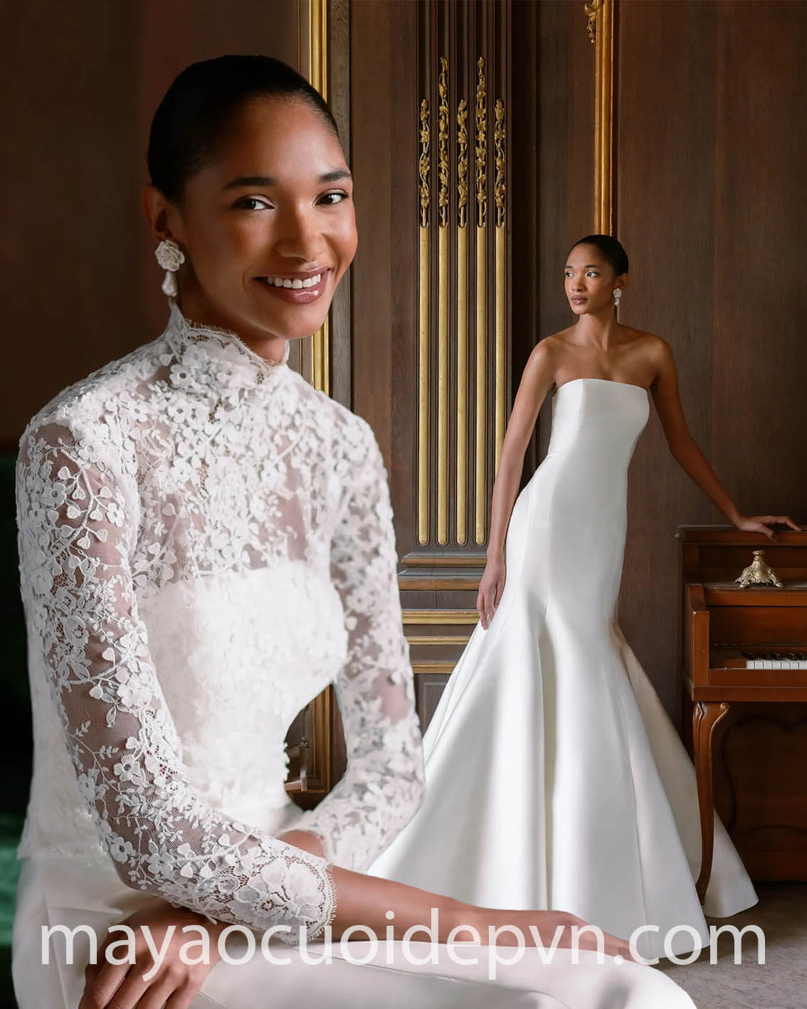 Hãy cùng khám phá những mẫu thiết kế áo cưới mùa đông đẹp nhất, với những chất liệu xa xỉ và chi tiết vô cùng tinh tế, và lý do tại sao một chiếc váy cưới mùa đông thiết kế riêng chính là lựa chọn hoàn hảo cho một ngày cưới khó quên trong mùa lạnh nhé.