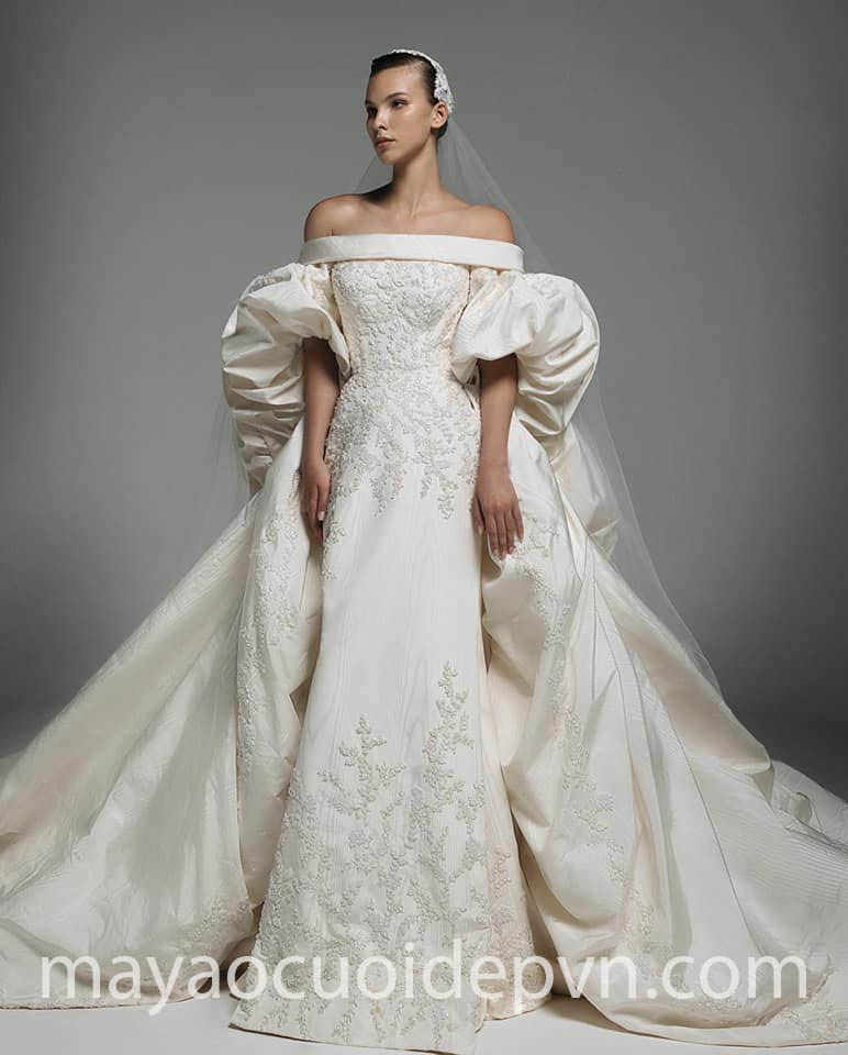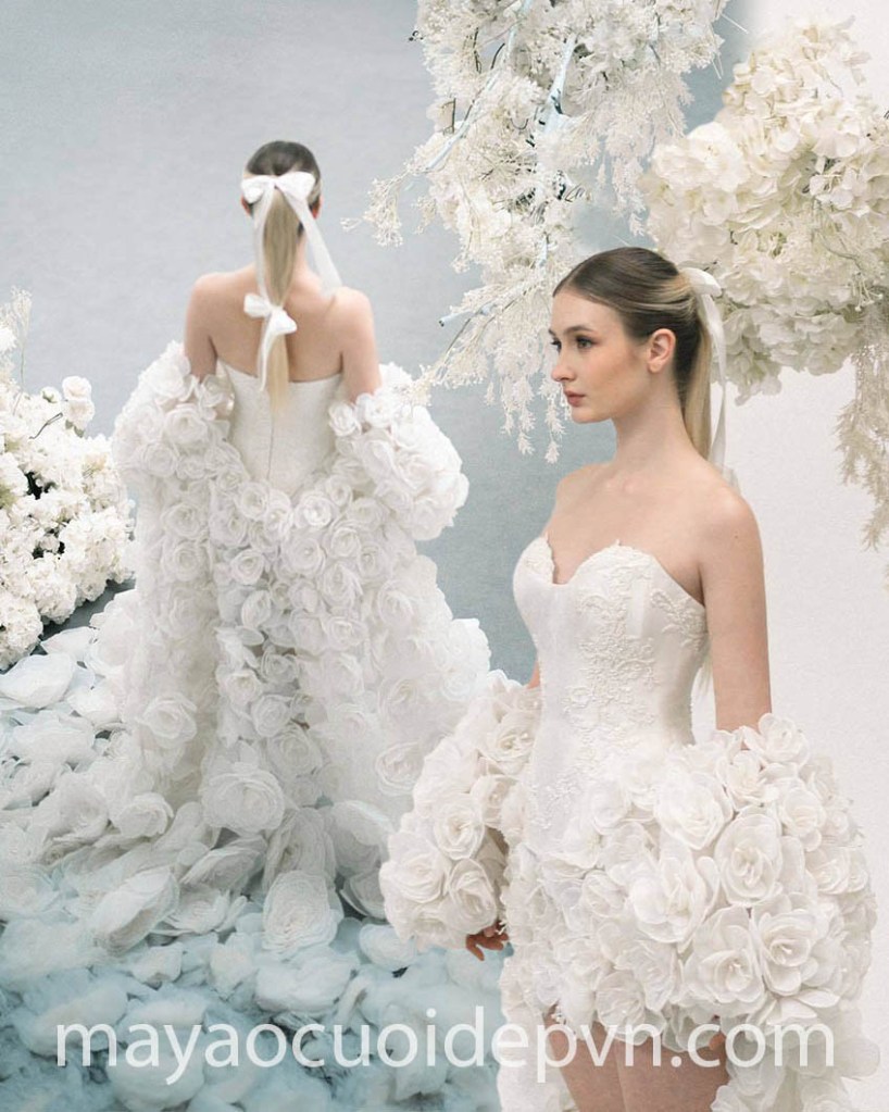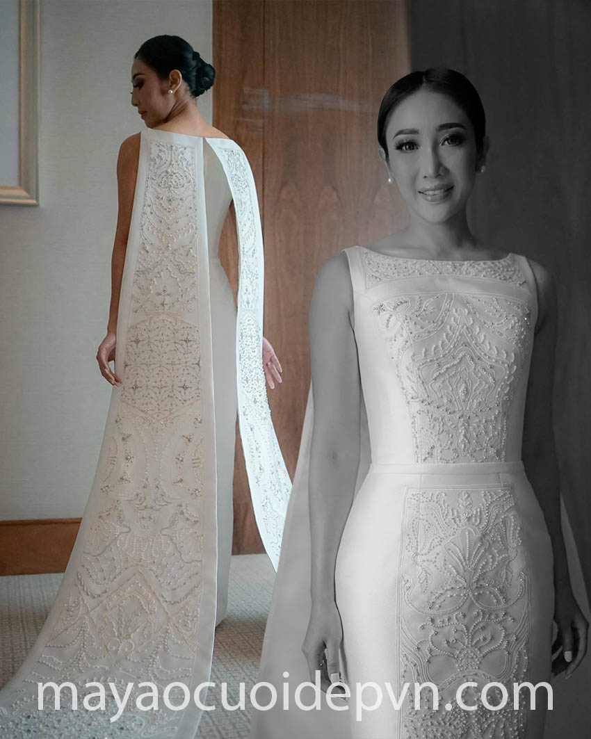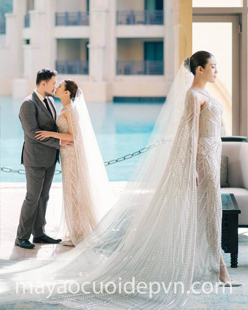 - Phù hợp với mọi phong cách – Từ lụa satin bóng bẩy đến ren thêu cầu kỳ, từ đường nét tối giản đến họa tiết xa hoa – áo choàng váy cưới có thể biến hóa theo bất cứ hình ảnh cô dâu nào mà bạn muốn.