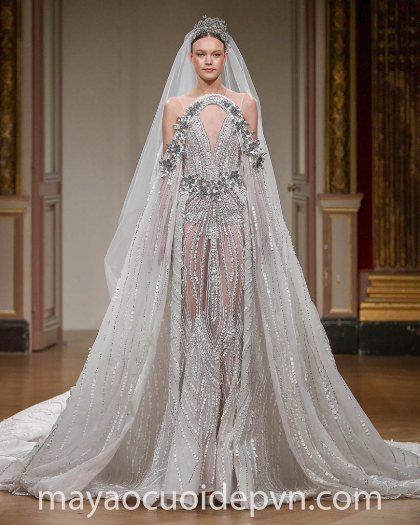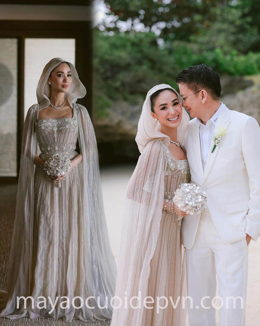 - Tuyên ngôn thời trang cô dâu – Thay vì mạng che mặt truyền thống, hãy khoác lên người một tấm áo choàng lộng lẫy khiến mọi ánh nhìn đổ dồn vào bạn.
