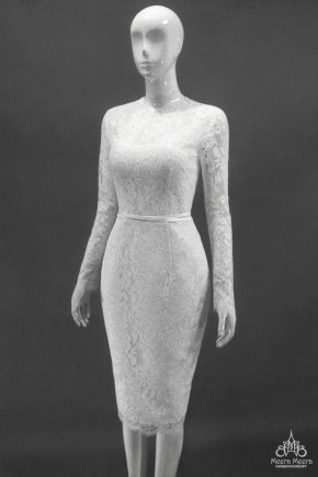 ÁO CƯỚI NGẮN THÂN REN CHANTILLY TAY DÀI CHÂN VÁY BÚT CHÌ. MàKH3921