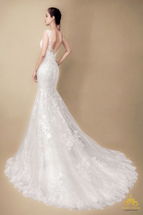 ÁO CƯỚI ĐUÔI CÁ HỞ LƯNG PHỐI HỢP REN CHANTILLY LÃNG MẠN QUYẾN RŨ. MàKH3945