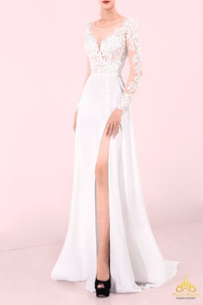 ÁO CƯỚI DẠ TIỆC LỤA XẺ TÀ CAO TAY DÀI XUYÊN THẤU PHỐI REN QUYẾN RŨ. MàKH3916